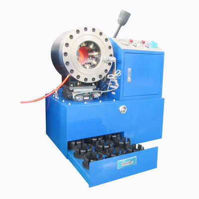Hose crimping machine mainly by withholding mechanism, motor, gear pumps, control valves and tank components. Suitable for mechanical engineering in the high-pressure hose assembly with hold processing, but also with hold two-way elbow, elbow and large shaped head. Hose crimping machine is a metal fitting through the hydraulic machinery and the corresponding mold with a high pressure hose withhold closely together to prepare a high-pressure hose and fluid connectors, referred to as high-pressure hose assembly. High-pressure hose assemblies are widely used in oil, coal, aerospace, construction machinery, agricultural machinery and other industries etc.
